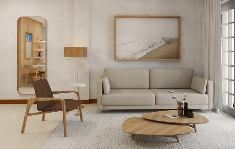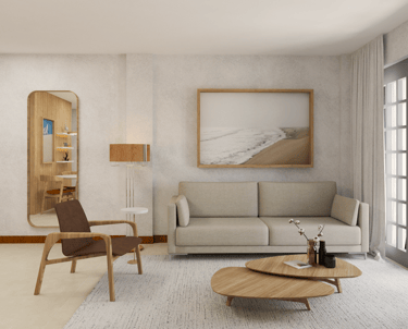 Nossa sala ganhou vida com tons claros e amadeirados, trazendo equilíbrio e serenidade. Agora, assistir TV ganhou um novo significado no conforto desse sofá acolhedor. A estante foi projetada não só para abrigar livros e decorações, mas também um cantinho especial para o café, tornando cada pausa mais prazerosa. A sala de jantar com a mesa redonda e o pendente circular moderno criam um ambiente perfeito para compartilhar refeições e conversas inesquecíveis.
