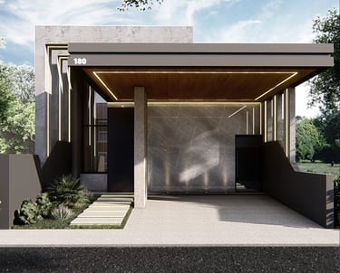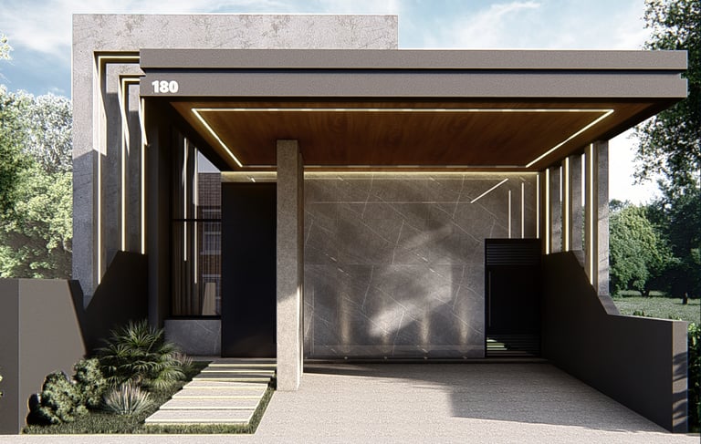 Nesse projeto de Retrofit, complementamos os elementos existentes, criamos um espaço coberto para os carros e trabalhamos com uma iluminação moderna, trazendo destaque para os revestimentos e os novos componentes da fachada.